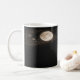 Elegant celestial mug featuring a glowing moon, delicate gold constellations, and subtle floral accents on a deep black background. A timeless minimalist design perfect for everyday use or gifting.