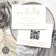 Minimalist Gold Script QR Code. Available digitally and printed. Simple elegance with Save The Date in a modern set script.The rest of the text you can easily personalise. Shown here in gold on white however the text and background colours can be changed if you wish via the customise further option.