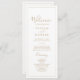 This minimalist gold wedding program is perfect for a simple wedding. The modern romantic design features classic gold and white typography paired with a rustic yet elegant calligraphy with vintage hand lettered style. Customizable in any color. Keep the design simple and elegant, as is, or personalize it by adding your own graphics and artwork. Include the name of the bride and groom, the wedding date and location, thank you message, order of service, bridal party and an optional "in loving memory" memorial.