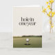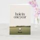 A sleek and modern minimalist golf-themed card. Features a single golf ball on a tee with a vast green space and a tiny flag in the distance. The composition is clean and airy with elegant sans-serif typography reading "HOLE IN ONE YEAR".