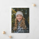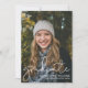 Modern Script Overlay Graduate Photo Announcement Card with room for additional details/information on the back. Back is white with black text.