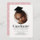 This minimalist chic girl's kindergarten/preschool graduation party invitation features your photo with a graduation cap. The reverse side features a pink background with random triangle and star patterns. Personalise for your needs. You can find more matching products at my store.