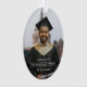 Personalize this modern oval shape photo graduation ornament front and back with your own text and photo. Features a minimalist design of a favorite photo of your choice with overlaid off-white text that allows the photo to shine. Ample blank space on the back to further personalize with your own sentiments or date and year. Photo credit Pexels.com image by Olia Danilevich