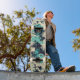 Minimalist Graffiti with Oceanic Hues and Abstract Skateboard