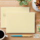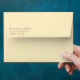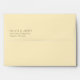 This envelope features a minimalist design with centred text on a plain background, creating an elegant and sophisticated look. The muted grayish-brown colour palette contrasts subtly against the white backdrop, emphasizing clarity and simplicity. Utilising clean, modern sans-serif fonts, the typography is bold yet understated, making it ideal for formal or personal correspondence. The layout focuses entirely on typographic hierarchy, ensuring that the names and address stand out without any additional graphics or embellishments. Perfect for those who appreciate a contemporary aesthetic in their stationery.
