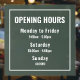 Fully customisable — easily edit your daily hours, business name, and details to match your brand. The elegant double-line frame adds a structured, polished look that catches the eye without overwhelming your space. Ideal for printing, laminating, or displaying on your shop window.