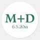 Minimalist Green Couple Initials & Date Classic Round Sticker