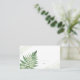 Minimalist Green Fern Wedding. Simple and trendy botanical illustration wedding place card with watercolor stains.