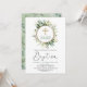 Minimalist Green Gold Botanical Greenery Baptism Invitation