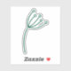 Minimalist Green Line Art Sticker. Delicate Botanical Plant Design. Glossy White.