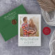 These minimalist green Merry Christmas card envelopes are perfect for a simple holiday card or invitation. The design features classic green and white typography paired with a rustic yet elegant script font with hand lettered style. Personalise the envelope flap with your name and return address.