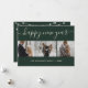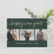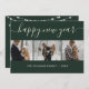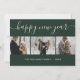 Simple, yet elegant green photo Happy New Year card featuring a modern script font and a photo collage on a green background. Easily personalise online.