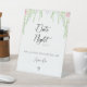 It is sturdy than I expected. Was worried about the material being flimsy but it is not. It is printed on some sort of plastic material. It should serve well at our wedding as long as wind isn’t too bad. Otherwise we will put some paper weights behind it and should be fine.