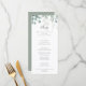 This minimalist greenery eucalyptus dinner menu card is perfect for a rustic wedding. The design features watercolor elegant green eucalyptus leaves.