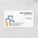 A plain white cover is accentuated by an abstract building block design at the left face of the card. The frame houses your business name and contact details. Northwards to the upper right corner lies your prestigious name, job title and slogan option.