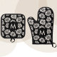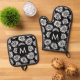 Minimalist Groovy Black and White Daisy Monogram Oven Mitt & Pot Holder Set