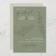 Minimalist handdrawn leaves green script wedding invitation