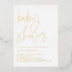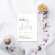 Invite guests to your event with this gold foil pressed baby shower invitation. It features a black minimalist handwritten script with simple typography and pinstripes pattern. Personalise this minimalist baby shower invitation by adding names, date, time, venue and other details. This gold foil baby shower invitation is available in other foil colours.