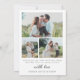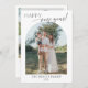 This Holiday Card features an arched photo on the front and 3 photos on the back. For this design "Happy new year" is not editable, but all other text can be customised.