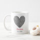 Celebrate love in a modern, minimalist way with this personalized heart fingerprint mug. Featuring a sleek fingerprint heart design and custom name with optional “Est.” date, this trendy mug makes a meaningful gift for couples, parents, anniversaries, Valentine’s Day, or everyday moments that deserve something special. Its clean black line art and soft script personalization create a timeless look that fits any style.