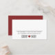 Guide your guests to their seats in style with this elegant, minimalistic place card. Featuring clean, modern fonts on a crisp white background, this design focuses on simplicity and sophistication. The couple’s names are separated by a subtle red heart. Perfect for couples who appreciate a timeless, understated look. This minimalist wedding invitation is red on the back, with the couple’s names which separated by a simple heart.