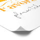 My thoughts on this product was excellent. Well printed in a gloss finishing and just the size l ordered. It arrived in good condition and am overall satisfied with the product. The printing turned out great. I was quite surprised with the finishing touch to the poster. The semi gloss was just right and a perfect size to display at the wedding.