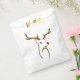 A modern twist on holiday tradition—this favour bag features a minimalist line art deer with crown-like antlers, a tilted profile, and a single evergreen-hued eye. A festive red accent adds a cheerful holiday touch against the clean white background, creating an elegant and understated look.