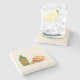 The coasters are gorgeous, a quality feel and heavy weight. They look like a precious archeological find. A rustic stone juxtaposed with a modern floral black and white print. I like the way the print goes slightly imperfect on the cut stone edges giving them a kind-of natural beauty.