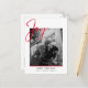 A chic, minimalist holiday card featuring timeless typography with 'Merry Christmas' in bold black lettering against a clean, simple white backdrop, accentuated by a festive red accent on the reverse side. Customise the photo, holiday message, and your name for a personalised touch. This modern, minimalist design will make you stand out this holiday season! The displayed image is for reference and can be replaced with your own photo. The placeholder image showcases a young couple in classic monochrome grayscale, adding a touch of elegance.