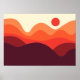 A bold minimalist landscape design in shades of red, orange, red-brown and cream