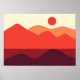 A bold minimalist landscape design in shades of red, orange, red-brown, and cream.
