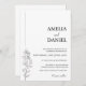 Invite your guests with this minimalist wedding invitation featuring a delicate line-drawing larkspur flower along the side. Clean, modern, and timeless, this elegant floral illustration adds a subtle touch of romance without overwhelming the design. Perfect for modern, minimalist, or botanical weddings, and fully customizable with your names, date, and venue details. W005