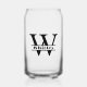 Minimalist Letter W Monogram and Custom Name Can Glass
