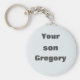 Minimalist Light Blue and Silver Text Visitor's Key Ring