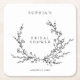 Minimalist black and white floral line art bridal shower square paper coasters with elegant botanical design for drink stations and table decor. Text editable via Template Objects in the Zazzle editor.