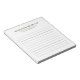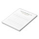 A professional lined notepad with a minimalist design in an emerald green and gold colour palette. Custom name and title position role and company or custom text presented on a simple white background. Personalise using the fields provided or use the 'message' button to contact the designer for help.