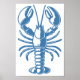 Minimalist Lobster Line Art Blue Outline Nautical Poster