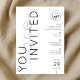 Create custom business event invites for your brand with this corporate minimalist Invitation. You can add your logo and event details as well as your company details and create personalized invites for your your launch party, gala dinner, store opening or conference. The trendy typography design writes 'you are invited' and the minimal layout makes this party announcement super versatile and can suit any brand or event.