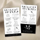 Ensure your clients know how to care and wash their wigs. with a custom wig aftercare instructions business card. This minimalist hairpiece care guide includes icons and care tips for wigs (can be used for natural hair or synthetic wigs) as well as instructions on how to wash a wig. Add your logo and business details to this modern black and white wig care guide and add it to your parcels, perfect for your hair boutique!