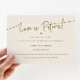 Postponing a big event like your wedding can be stressful, but you can still look stylish with this modern and minimalistic change of plans template card. It says "love is patient" in stylish script font at the top with a little heart. The background is cream.