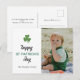 Minimalist lucky shamrock st. Patrick's Day Photo Holiday Postcard