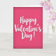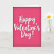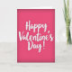 This card features a rich fuchsia background that gets a bit darker toward the edges, drawing your eyes inward. In the center, the words “Happy Valentine’s Day!” stand out in large white cursive-style lettering. The letters have a lightly textured look, like they were painted with a brush, and there’s a soft shadow under each one for a little depth. There aren’t any characters or extra objects, so the message stays front and center. The strong pink color and bright white text feel romantic and sweet without needing anything else ❤️. It’s meaningful to give because it keeps the focus on a simple, caring message that fits a partner, friend, or anyone you’re thinking of 🥰. Hope it helps you share Valentine’s Day feelings with someone special.