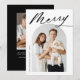 Minimalist Merry Black Script 2 Photo Holiday Card