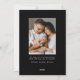 Modern Christmas photo card featuring "Merry" displayed in a bold black script at the top of the design with a white background. Your vertical photo is displayed inside an arch frame. Personalise the front of the photo Christmas card with your family name and year. The back of the simple holiday card features an additional photo with space for your personal message.