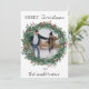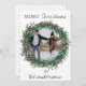Minimalist Merry Christmas Leaves Wreath Photo Holiday Card