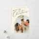 Minimalist Merry Christmas Script Five Photo Beige Holiday Card