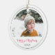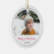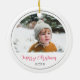Minimalist Merry Christmas Script Photo Ceramic Ornament
