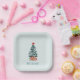 Minimalist Merry Christmas Snowy Tree Paper Plate