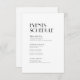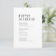 This minimalist modern art deco wedding schedule of events enclosure card presents both an elegant, black tie formal, and a casual, simple design for a traditional or more rustic marriage celebration. The plain, neutral black and white layout with unique, classic typography alludes to minimal boho or classy retro making it a perfect design for any event theme. Add more on the back for a timeline packed with even more events and information for your guests.