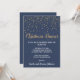 This minimalist modern blue confetti christmas dinner invitation is perfect for a classy Christmas or holiday supper celebration. The design features festive gold confetti with elegant gold and white calligraphy on a blue background.